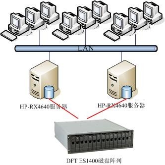 磁盤(pán)陣列:DFT ES1400 SCSI-to-Fiber陣列,6塊146GB磁盤(pán)配置成RAID5