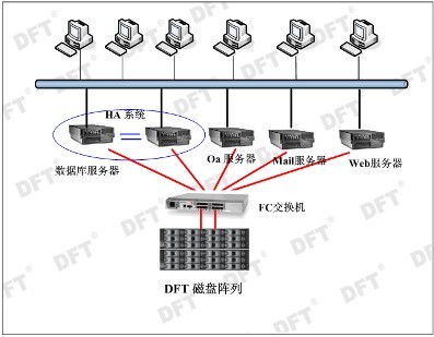 在本方案中采用4Gb的全光纖結構,大大的增強了系統性能,保證了系統高IOPS、高容量存儲要求。滿(mǎn)足了整個(gè)系統的數據的統一管理,減少了系統的維護難度。同時(shí),DFTraid 3016F4R陣列具有很強的擴充性能,使系統在后期上了其他系統后,能夠有效的對存儲系統進(jìn)行擴充。整個(gè)系統,采用SAN架構,為后期的LAN-FREE備份打下堅實(shí)的基礎。