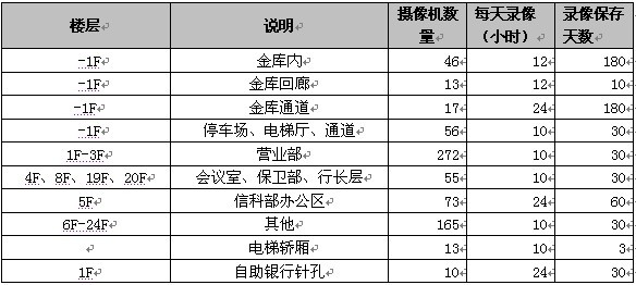 中國銀行天津分行現有局大約有720個(gè)監視點(diǎn),由于作業(yè)時(shí)間的和數據安全性程度的不同,監控和數據的存儲要求也有所區分,其中金庫區域數據最為重要,要求存儲6個(gè)月,即180天,并且單獨存儲。具體需求如下: