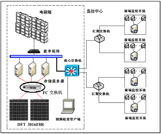 根據用戶(hù)的需求分析以及相關(guān)容量的計算。在本方案中,出于對容量、穩定性及擴展性等因素的考慮,存儲磁盤(pán)陣列我們采用FC SAN存儲架構,采用DFT RS-3016F8-S/D40陣列,通過(guò)級聯(lián)擴展柜的方式,每臺DFT RS-3016F8-S/D40有16個(gè)磁盤(pán)位,******可級聯(lián)6臺擴展柜,全部采用1TB的SATA硬盤(pán),單臺******可達112B,以滿(mǎn)足客戶(hù)海量數據存儲的需求。