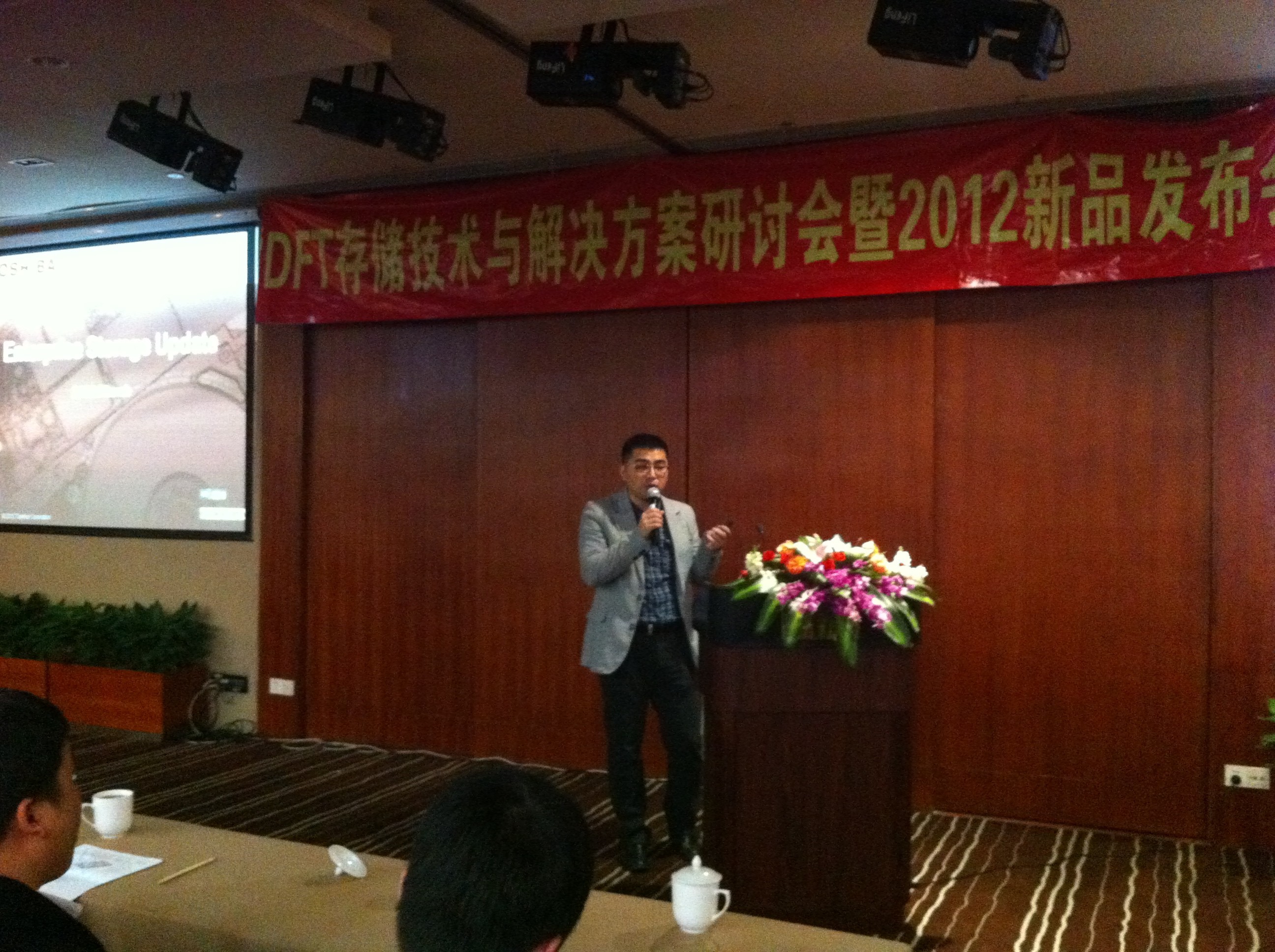 憑借DFT的市場(chǎng)影響力和深厚的客戶(hù)關(guān)系,本次活動(dòng)取得了圓滿(mǎn)成功。與會(huì )人數高達70余人,全場(chǎng)座無(wú)虛席。本次活動(dòng),承繼了“DFT存儲技術(shù)與解決方案暨新品發(fā)布會(huì )”的主題內容,并繼續攜手知名硬盤(pán)廠(chǎng)商東芝與客戶(hù)一同分享最新的專(zhuān)業(yè)的存儲技術(shù)、解決方案、企業(yè)硬盤(pán)技術(shù),面向客戶(hù)發(fā)布了DFT2012年監控行業(yè)新產(chǎn)品——“小巨人”RS-3000I系列,旨在讓客戶(hù)對整個(gè)存儲系統有更深入和更系統的了解。