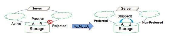 GS5400控制器采用ALUA(Asynchronous Logical Unit Access)工作模式,基于A(yíng)LUA模式的存儲能從任何一個(gè)控制器訪(fǎng)問(wèn)存儲所有卷,而卷屬主無(wú)須切換,避免“乒乓效應”,從而提高存儲性能。