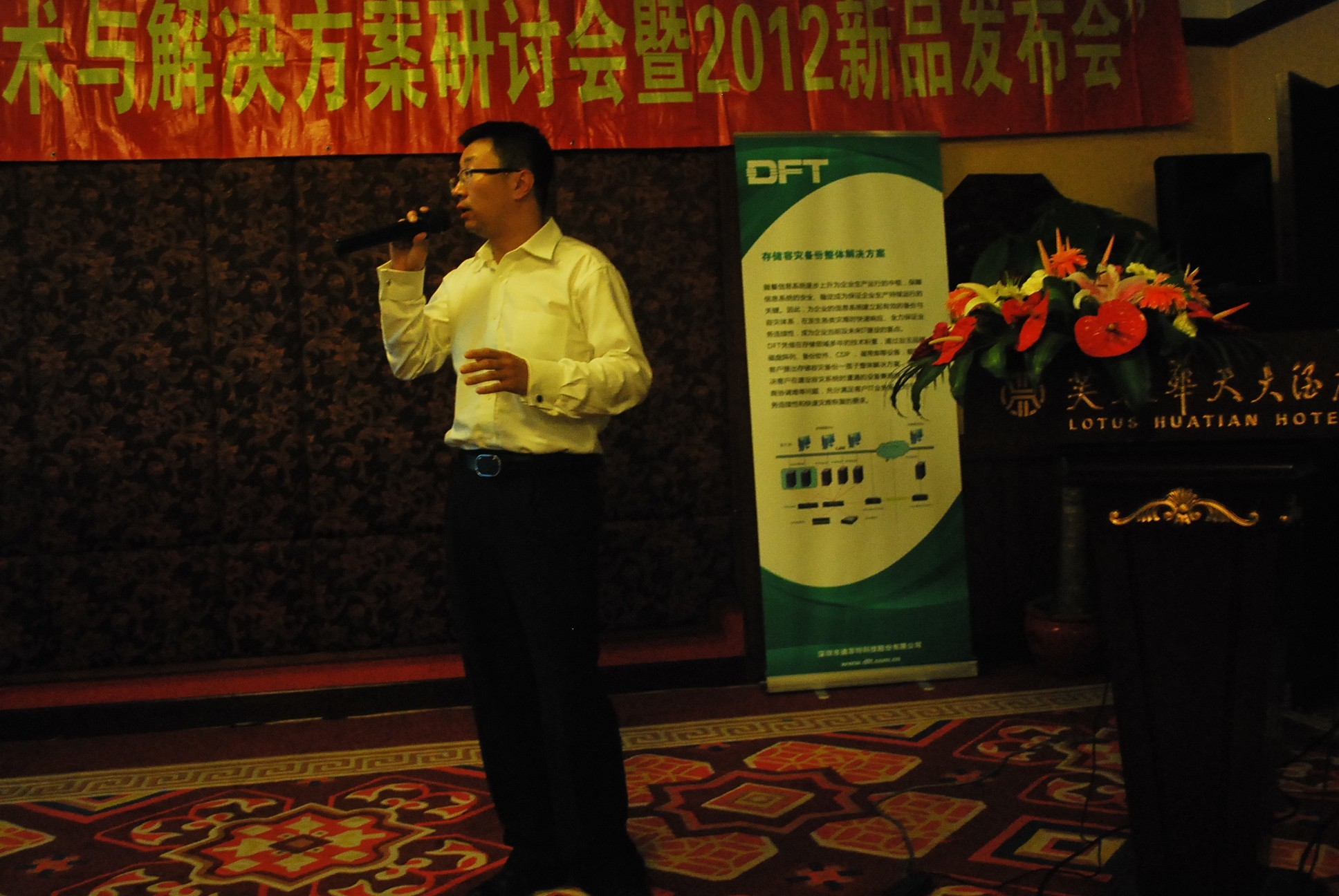 6月14日,DFT存儲技術(shù)與解決方案研討會(huì )暨2012年新品發(fā)布會(huì )長(cháng)沙站巡展圓滿(mǎn)結束。這是DFT全國巡展的第六站,也是華中地區最重要的一站。本次探討會(huì )為宣傳DFT存儲技術(shù)、發(fā)布DFT新產(chǎn)品,進(jìn)一步打開(kāi)華中地區市場(chǎng)起到了積極作用;同時(shí),也為維系DFT與當地知名SI、代理商以及客戶(hù)關(guān)系奠定了基礎。