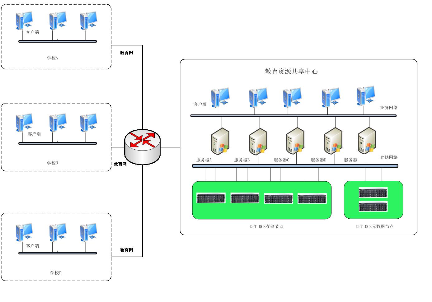教育資源共享中心是當前教育部門(mén)的重要工程,但中心的IT系統因為涉及大量數據的匯聚與共享,對后端存儲設備和海量的數據的管理也提出了極高的要求,傳統磁盤(pán)陣列無(wú)法滿(mǎn)足高帶寬、資源共享的需求。